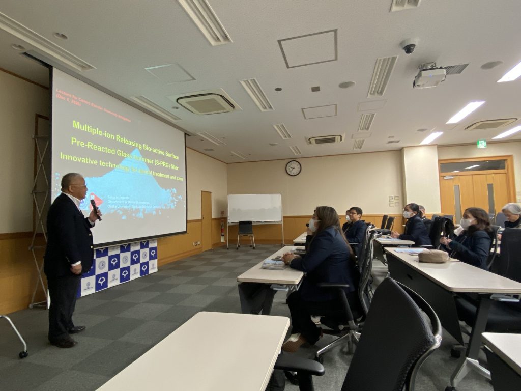 一行は、歯科生体材料学講座の今里聡教授による講演会に参加された後、小児歯科の鋸屋侑布子助教および三笠祐介医員の引率のもと、歯学部附属病院において、保存科、口腔補綴科、口腔総合診療部、小児歯科、障害者歯科治療部、矯正科を見学されました。